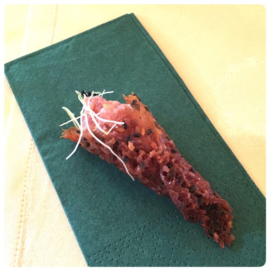 - Yellofin Thunfisch Tartare im Seasam Miso Hörnchen