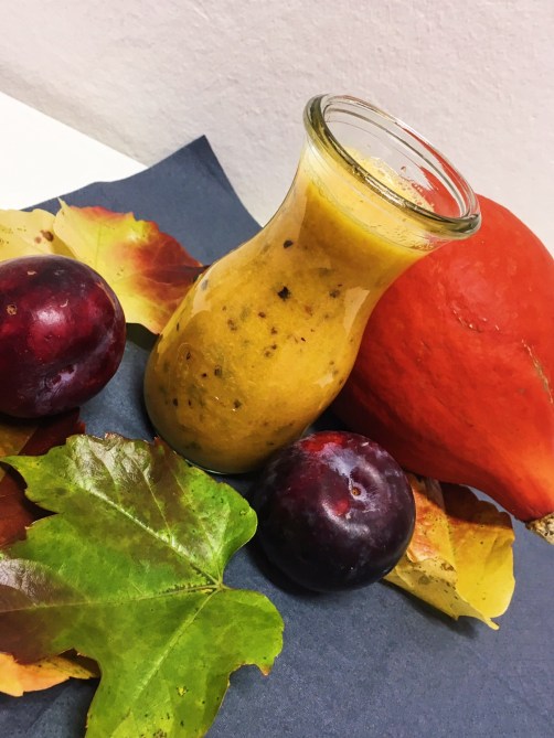 Ein Smoothie ist da natürlich eine klasse Möglichkeit, um sich einen köstlichen Obst- und Vitaminkick zu holen. Mit frischem Obst und Gemüse der Saison funktioniert das natürlich besonders gut. Aber am besten probiert ihr das Rezept für meinen Kürbis- Pflaumen Smoothie einfach selbst!